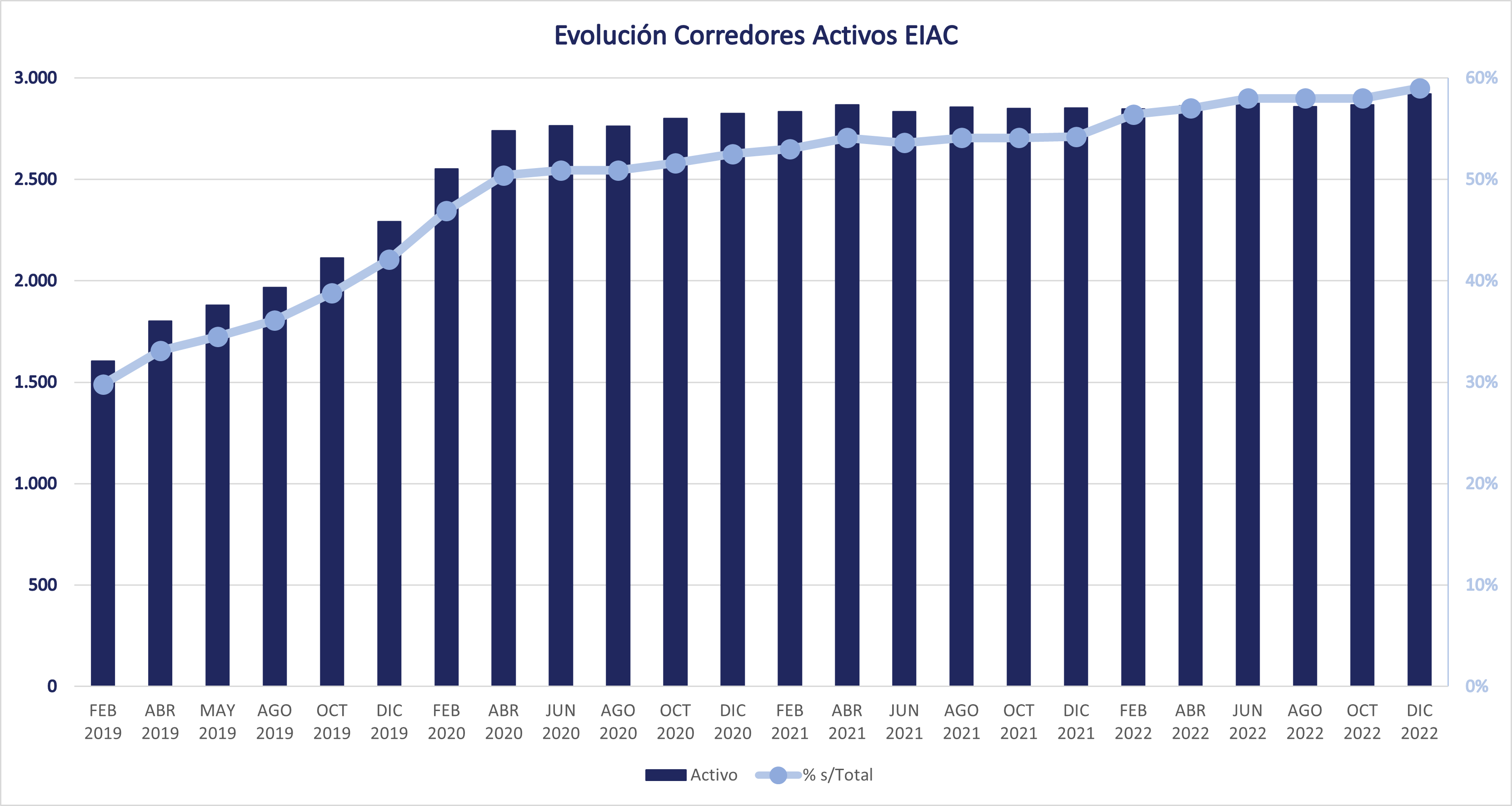Asimismo, el número de corredores con procesos activos de intercambio EIAC alcanzaba el 59%, contabilizándose más de 2.922 corredores operativos.